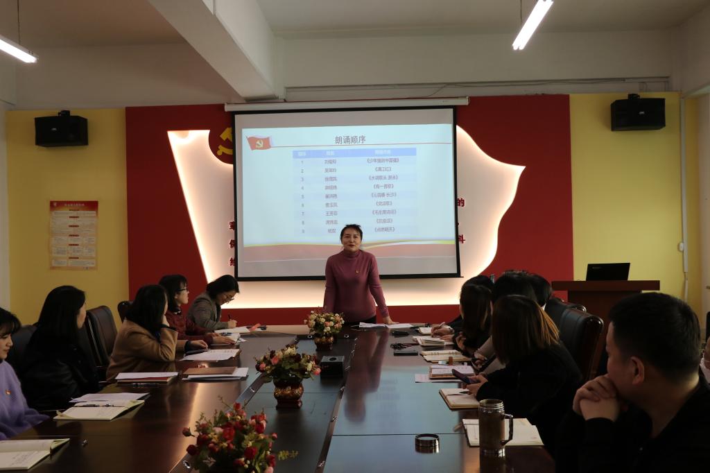 “诵读经典”活动中,9名党员代表选取了不同历史时期的作品诵读,有梁启超的《少年中国说》、岳飞的《满江红·怒发冲冠》,也有毛泽东诗词和反映抗击疫情的文章,还有现代诗《有一首歌》和《点燃明天》。这些作品,或激励党员干部积极进取,或抒发对党、对国家的一片赤诚情怀,或反映中华民族万众一心,共抗时艰的民族精神,或描绘未来的宏伟蓝图……各位老师在诵读的过程中吐字清晰、声音洪亮、情感充沛,引发了在座党员们的共鸣。