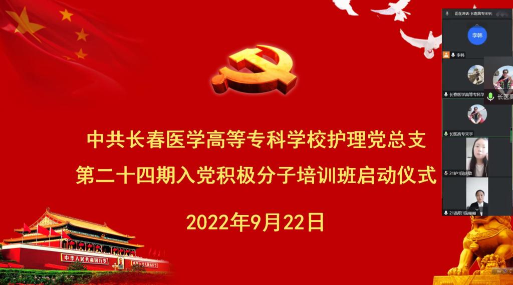 为深入学习贯彻习近平新时代中国特色社会主义思想,切实提高积极分子培训工作质量,加深积极分子对党的认识,树立正确的入党动机,护理党总支于9月22日在腾讯会议举行了2021级入党积极分子培训启动仪式。565net必赢客户端院长宋宇、护理党总支副书记任佳伟、学院相关人员及2021级入党积极分子参加了启动仪式。