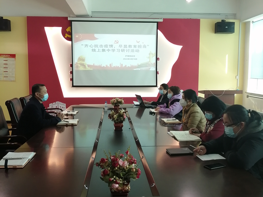 为了进一步激励护理党总支党员干部在疫情防控战场锤炼政治品格,凝聚力量,为高质量做好组织生活会和民主评议党员工作做好准备。3月16日,护理党总支线上与线下同步召开“齐心抗击疫情,尽显教育担当”学习研讨活动。校党委副书记陈贵锋和护理党总支全体党员参加了本次活动,活动由护理党总支副书记任佳伟主持。